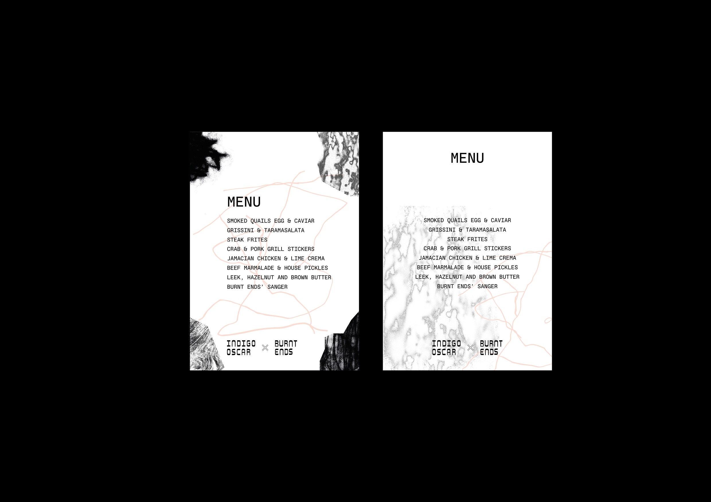 We were engaged to creatre a promotional campaign and visual identity for a collaboration between Indigo Oscar and Burnt Ends, the Michelin-starred restaurant from Singapore. The concept explored the intersection of art and fine dining, creating a visual language that captured the craft, theatre and sensory depth shared by both kitchens. By merging the distinct styles of the two brands, we created a new expression that felt meaningful, balanced and true to both identities.