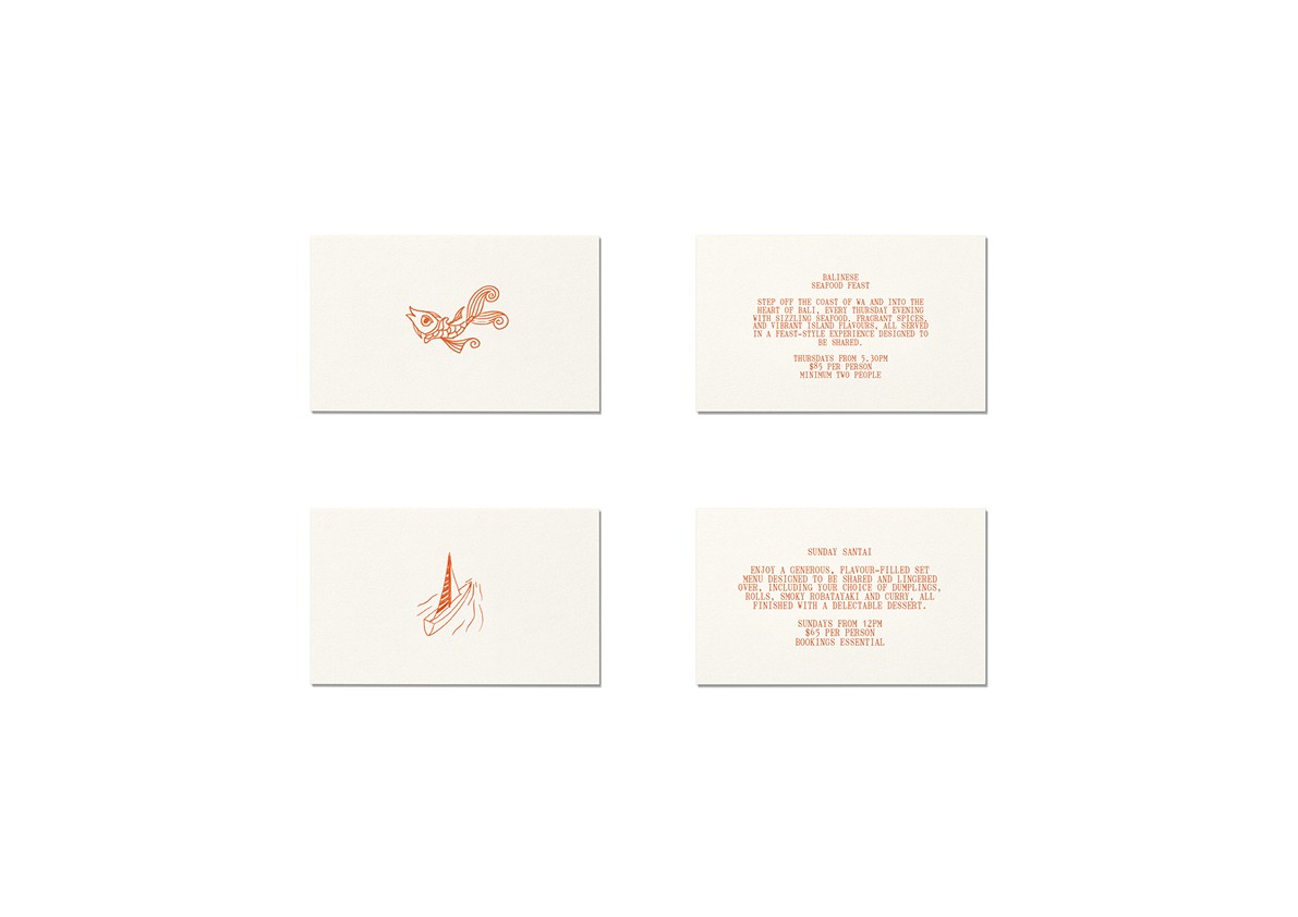 Commissioned by Prendiville Group, we crafted a premium, island-inspired brand for Lontara—Rottnest Island’s Asian restaurant celebrating the flavours and spirit of the Indonesian archipelago. Anchored in our ‘Voyage of Flavour’ narrative, we built a complete brand world: logo and brand guidelines through to rollout across signage, menus, website, staff uniforms and a suite of bespoke illustrations. In parallel, we supported interior design selections—advising on materials and finishes, colour palette, patterning, upholstery and joinery details, lighting accents, and wayfinding substrates—so the space and the brand speak the same language from entry to last course. The result is relaxed yet elevated: a polished coastal aesthetic with island warmth, designed for long lunches and lingering evenings.